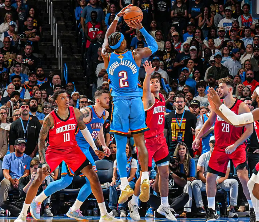 第三节比赛火箭打出一波6-0,随后雷霆回击一波6-0,申京罚球得分后华莱士命中三分,申京内线强打得分后华莱士罚球2中1,亚历山大上篮得分后雷霆落后4分。暂停后亚当斯补篮得分,华莱士上篮得分后卡佩拉罚球2中2,随后雷霆打出一波8-2,末尾阶段申京、杜兰特帮助火箭保持领先,三节比赛结束火箭领先4分。第四节比赛米切尔暴扣得分,申京命中三分后米切尔继续得分,史密斯投篮得分后霍姆格伦扣篮得分,申京命中三分后哈滕连得4分,申京打成2+1后奥科吉罚球2中1,后续亚历山大得分止血,接下来的比赛阿门得分,华莱士等人也给予回应,亚历山大中投命中后雷霆反超1分,申京抛投得分后杜兰特罚球2中1,亚历山大中投命中后两队打进加时。